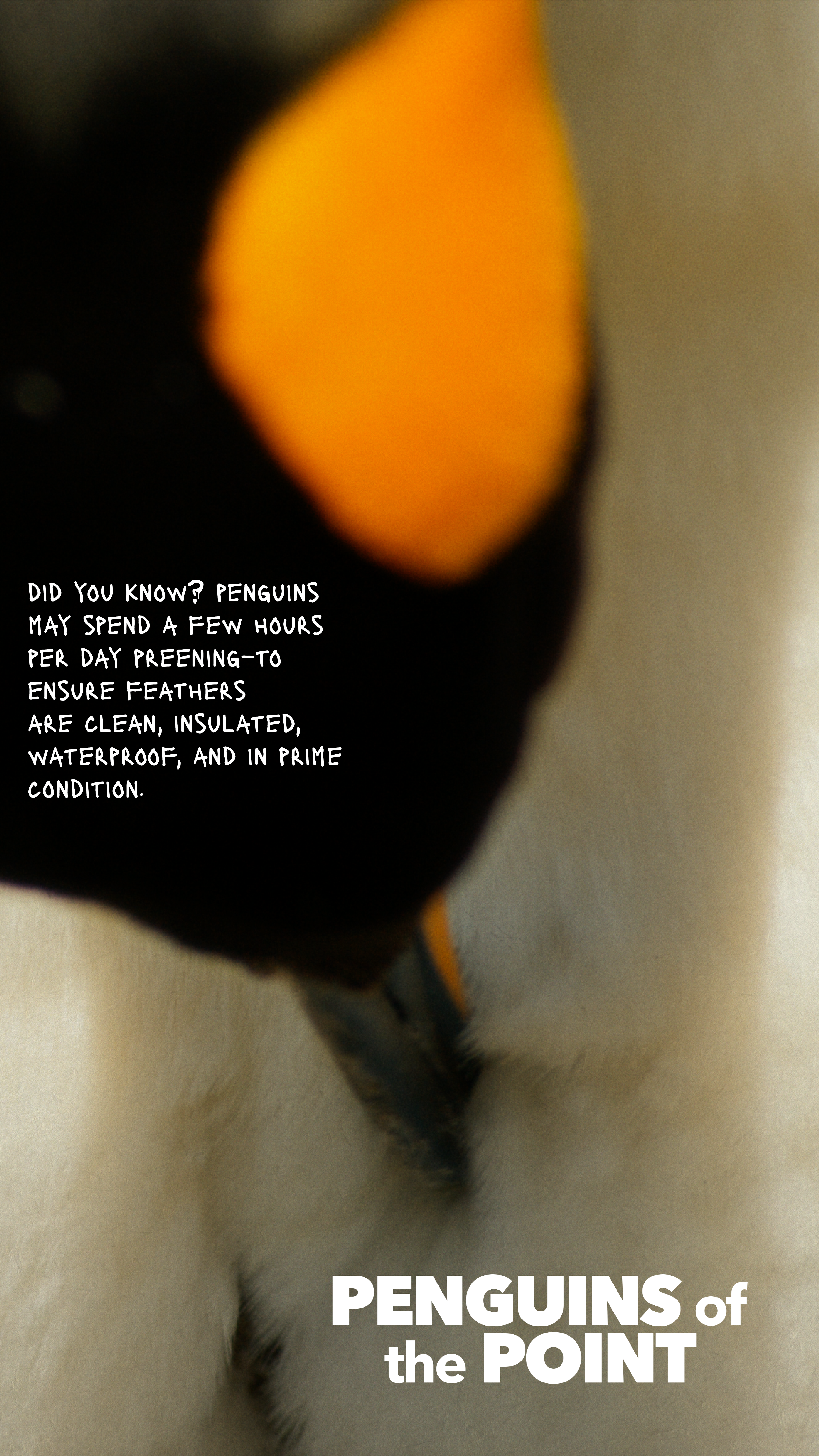 Watch gentoo and king penguins navigate the shoreline where predators await, witness the spectacle of king penguins undergoing their annual molt, follow magellanic penguins as they return to breed along the shore, and observe tender scenes of chicks huddling together in crèches for warmth and protection before being fed by parents returning from the sea. Along the way, the film sheds light on the growing threat of avian influenza and the wider impacts of climate change and overfishing on penguin populations and their fragile ecosystem.